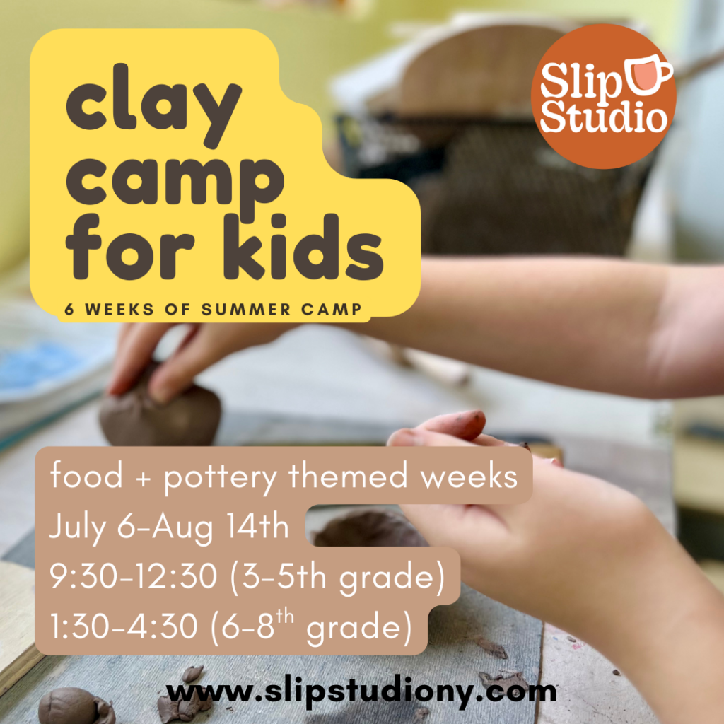 Please NOTE: Slip Studio is an adult workspace, with bar-height stools and high worktables. Kids should have the ability to sit and work on the day’s project. Camp sessions run for 3 hours, with a short snack break.